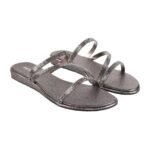 Embrace understated comfort with these sleek gunmetal grey slippers, designed for effortless style during your daily routine. The soft synthetic upper and flat sole provide all-day ease, whether you’re at home or stepping out casually.